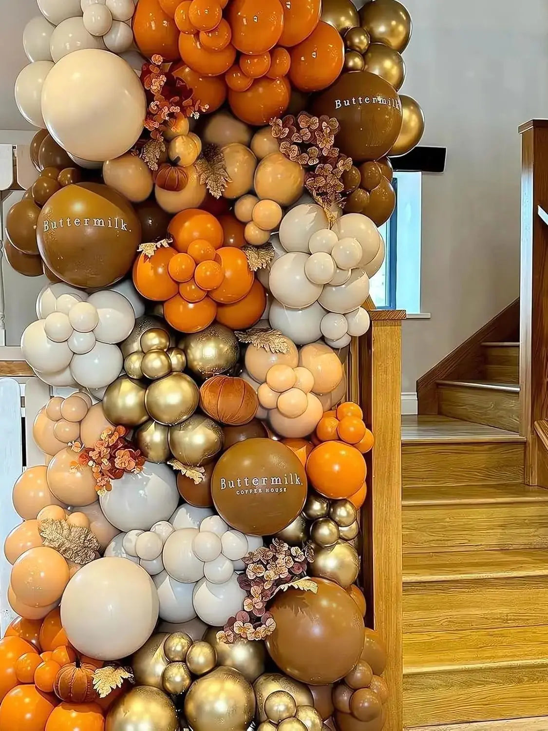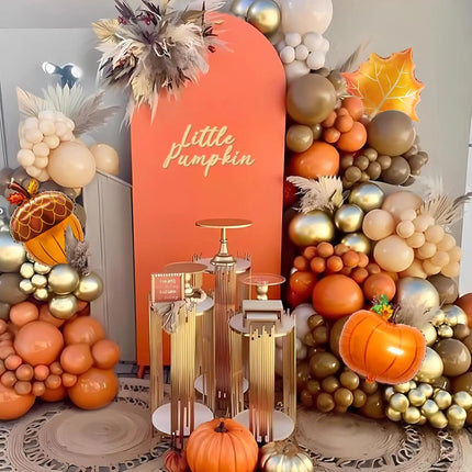 143 PCS Fall Balloon Arch Kit Pumpkin Maple Leaves Pine Cones for Thanksgiving Autumn Harvest Birthday Party Decorations
