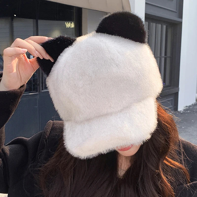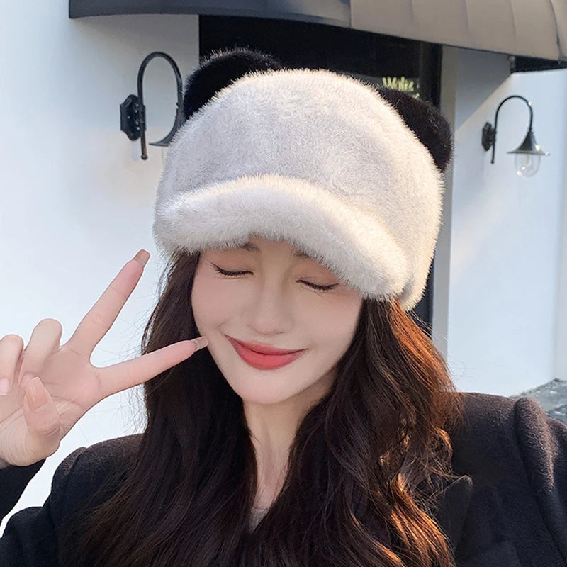 1pc Bear Ears Baseball Hat for Women,cute Plush Cold Warm Adjustable Head Cap,Suitable for Daily Wear,Christmas,Travel,Holiday
