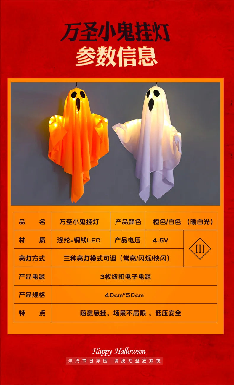 LED Glow Ghost Party Halloween Decoration for Home Indoor Outdoor Haunted House Bar Hanging Horror Props with Lights