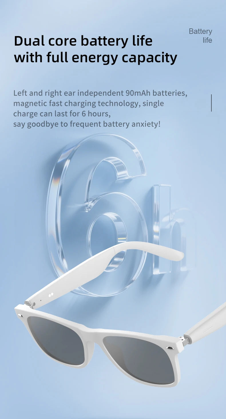 New AI Translation Smart Glasses Bluetooth Call Headphones UV Protective Lenses Connected Bezel Outdoor Sports Sunglasses