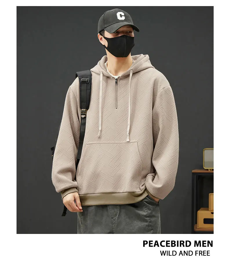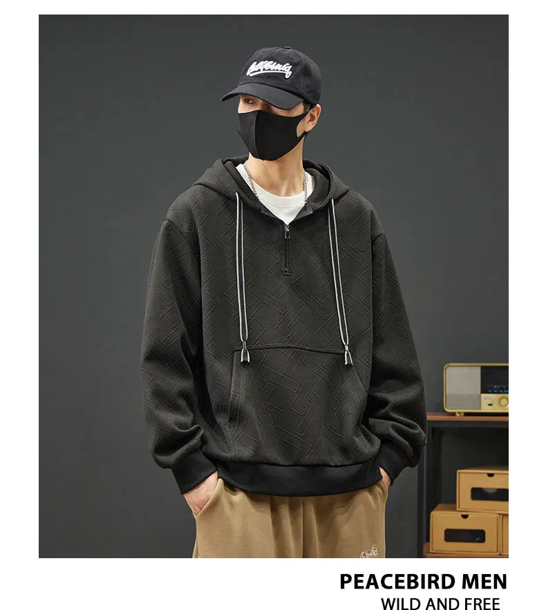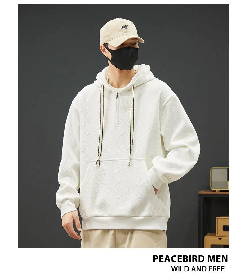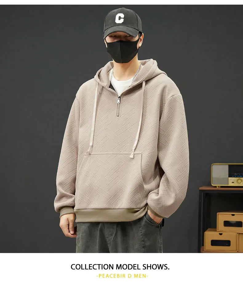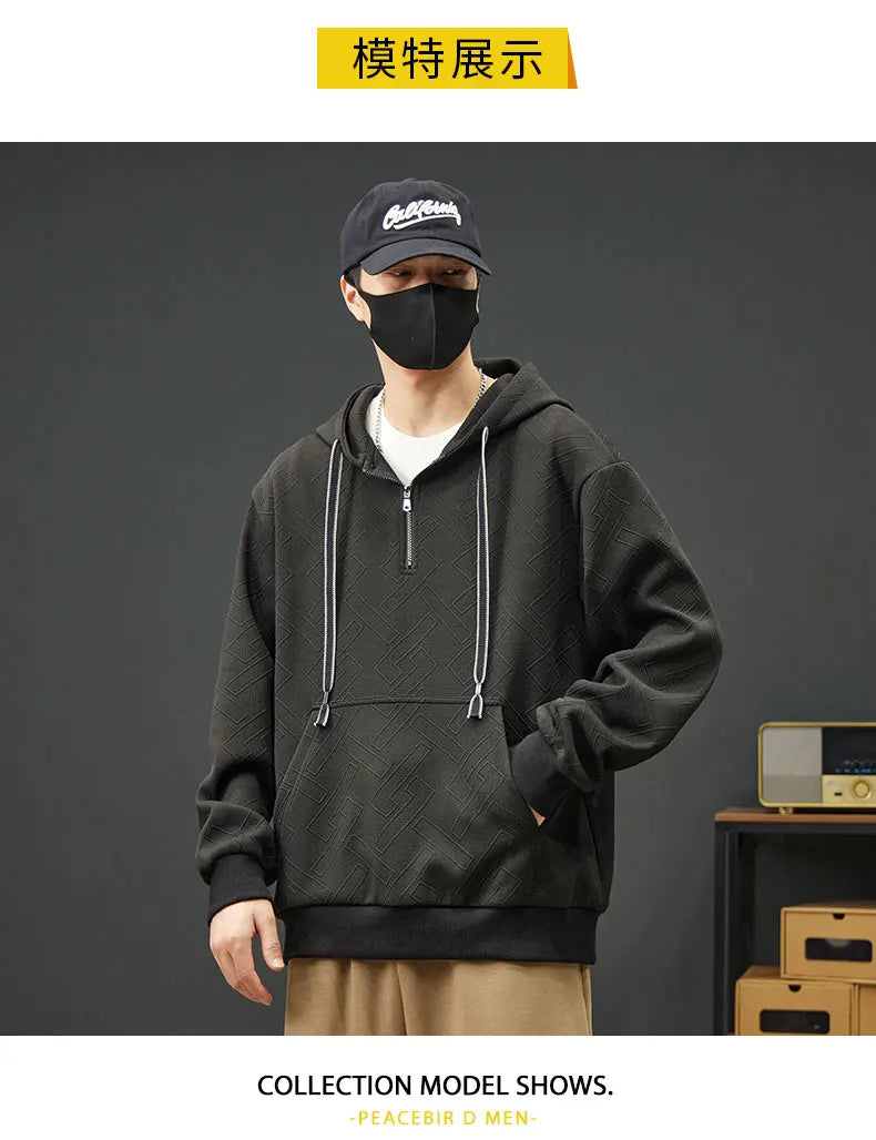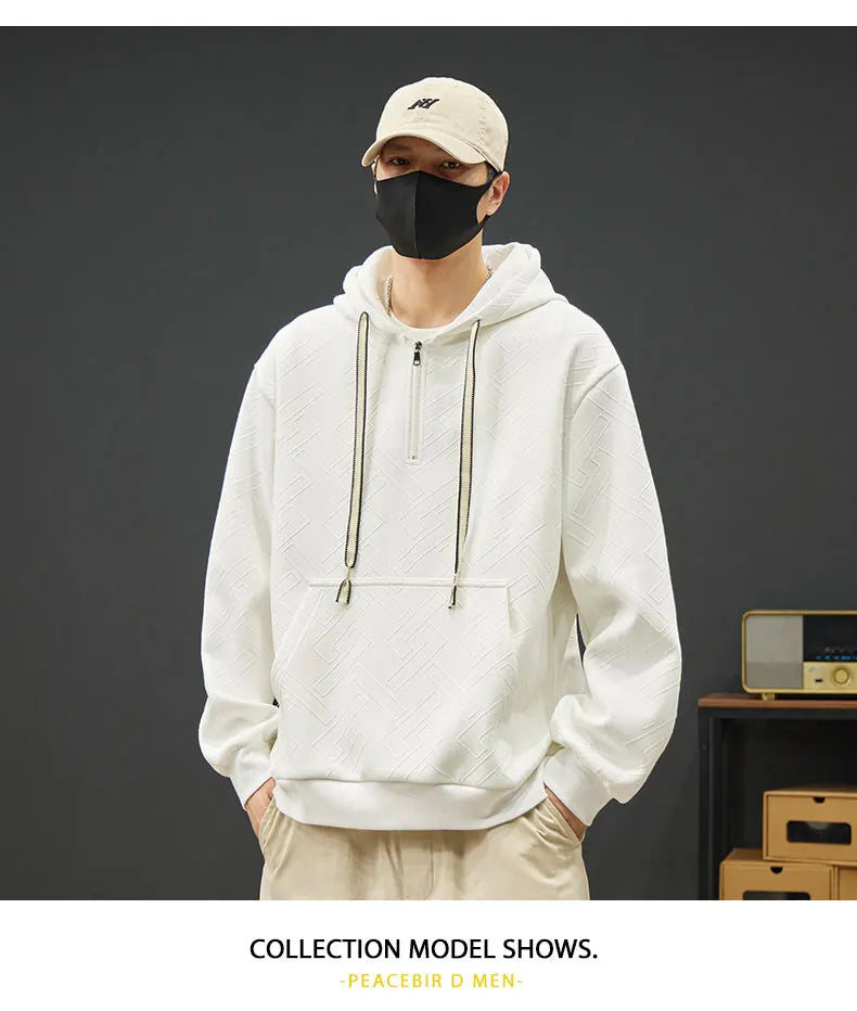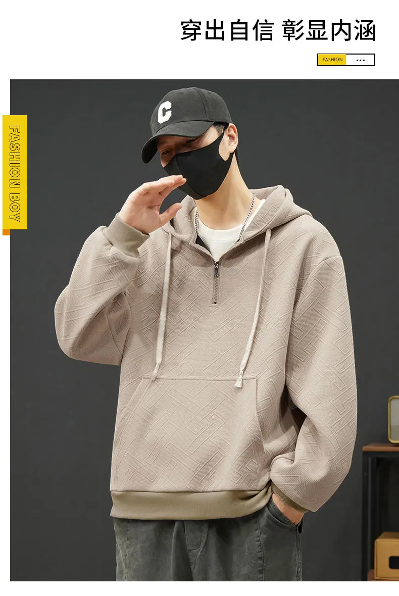 2025 New in Men's Hoodie Half Zip Long Sleeve Oversize Hooded Sweatshirt Male Spring Clothes Loose Fit Zip-up Golf Wear Big Size