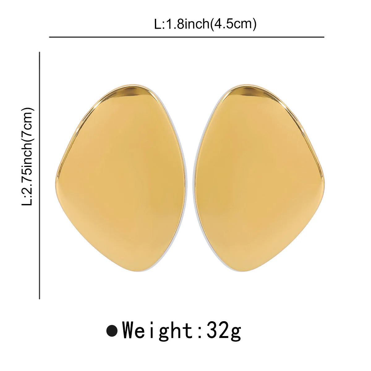 New Large Asymmetric Flat Bright Metal Alloy Massive Heavy Earrings for Women Girls Exaggerated Trend Jewelry Gifts