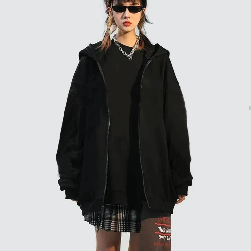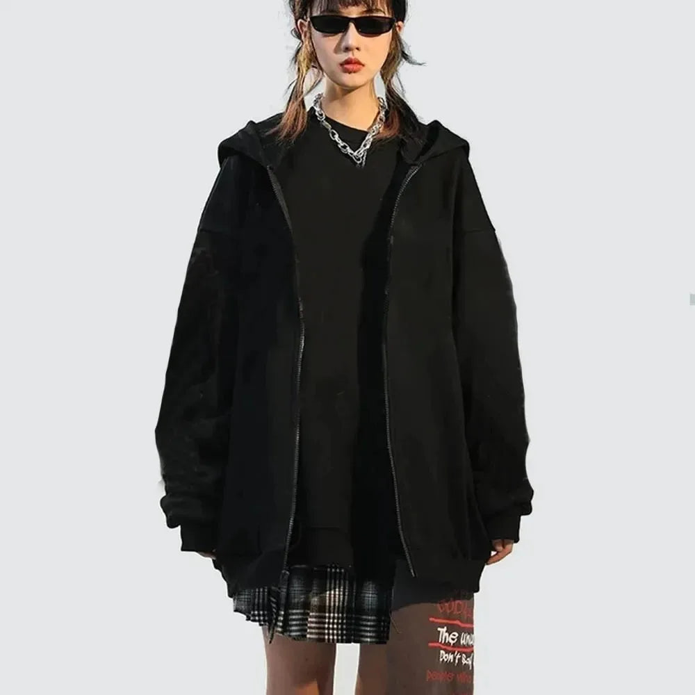 Autumn Trendy Men's Hoodie Solid Color Zip Up Loose Jacket Coats Casual Long Sleeve Hooded Sweatshirt Outdoor Male Clorhes