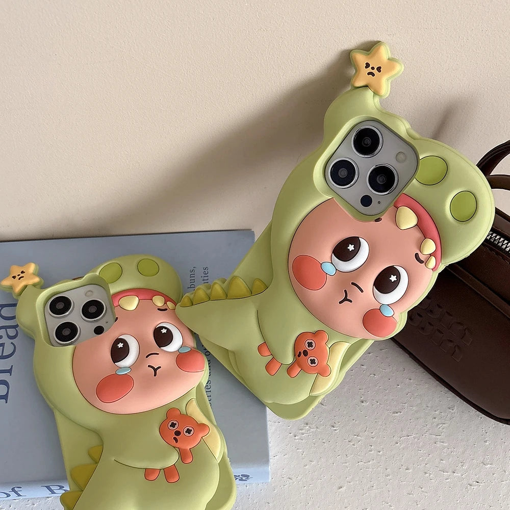 Cute 3D Dinosaur Twinkle Star Boy Phone Case For iPhone 17 Kawaii Shockproof Soft Silicone Cover
