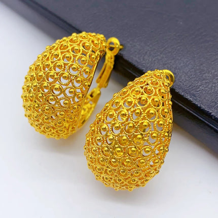 Dubai Simple Fashion Gold Plated Hollow Pierced Earrings Piercings Cartilage Ear Ring for Women Bride Ornament Gift Fine Jewelry