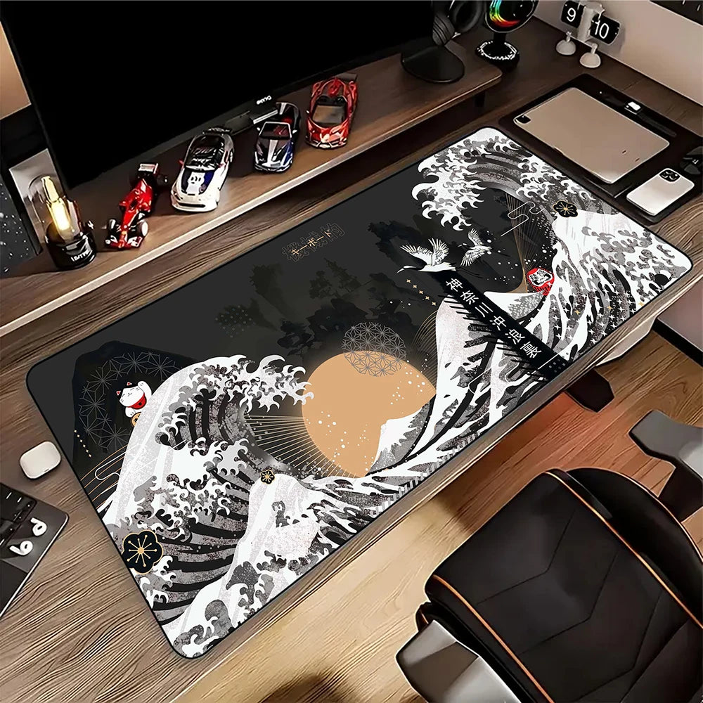 Japanese Great Wave Off/Chinese Style Dragon Mouse Pad for Gamer Setup Gaming Mousepad Rubber Keyboard Pads Pc Desk Mat 50x100cm