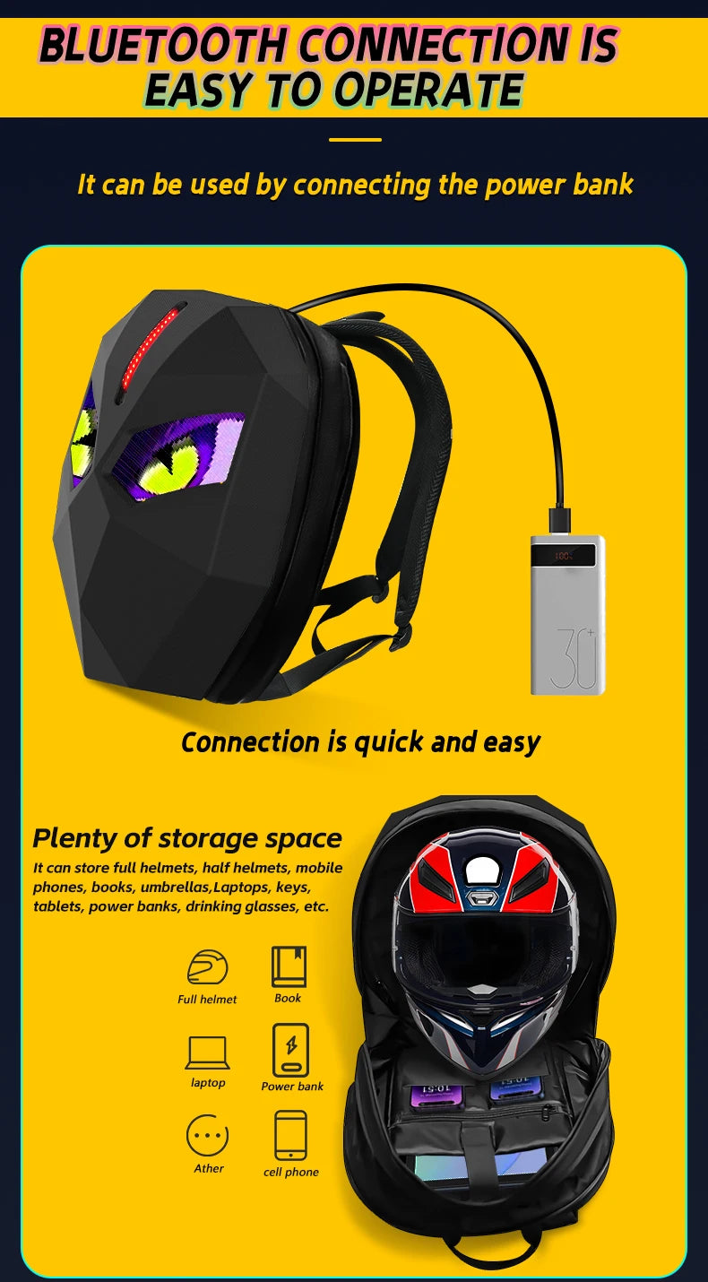 Knight LED Motorcycle Backpack for Men, LED Backpack With DIY Programmable Full Color Screen, Hard Shell Waterproof Helmet Bag