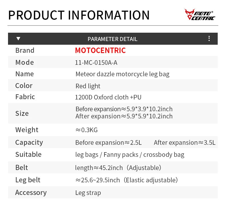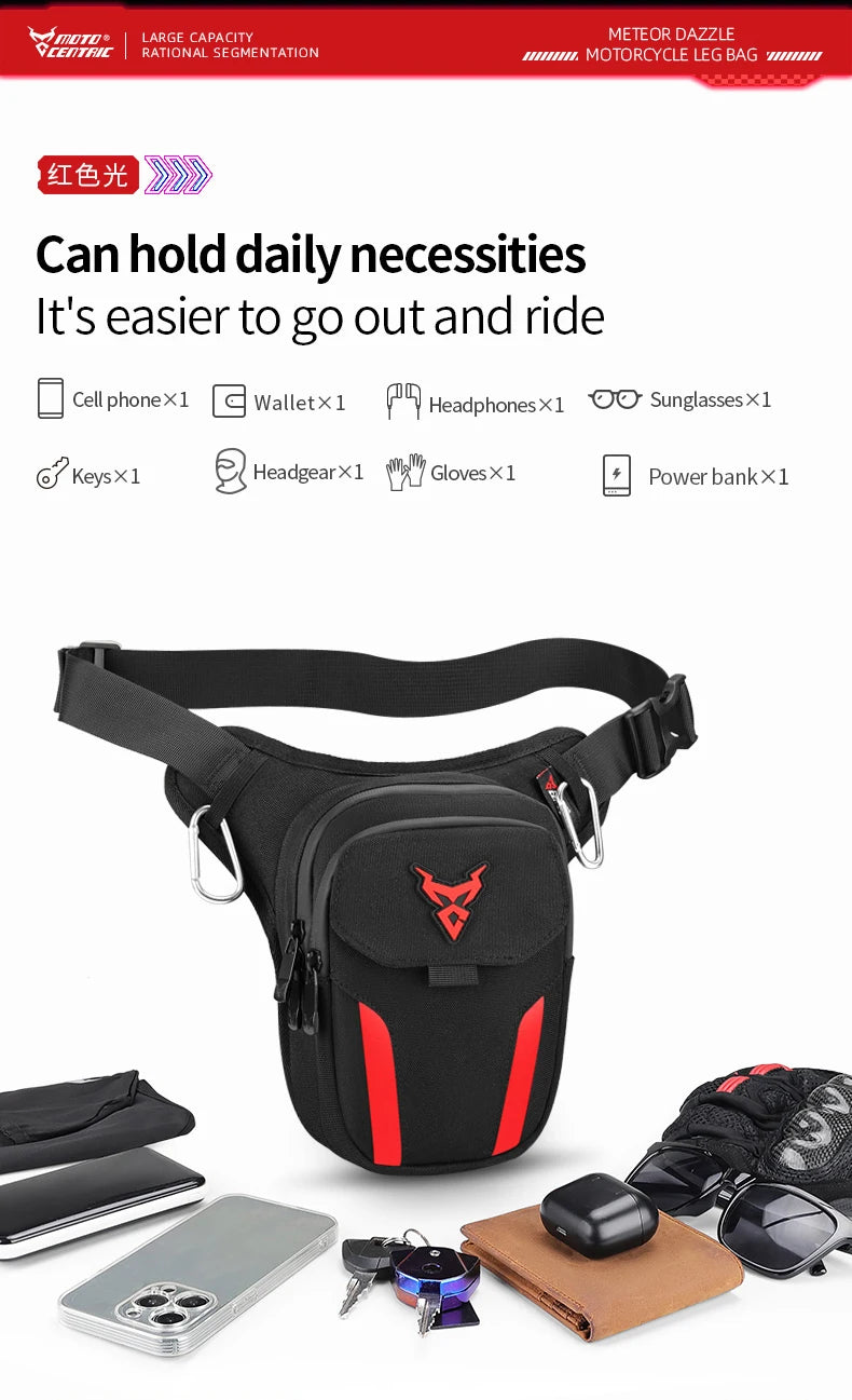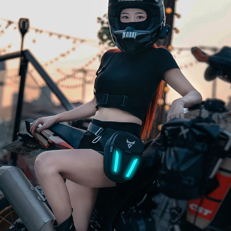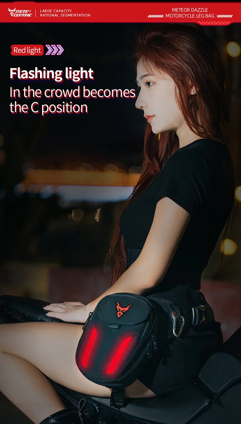 LED Light Drop Leg Bag Motorcycle Waterproof Waist Bag Hip Bum Fanny Pack For Outdoor Riding Cycling Hiking Fishing Climbing