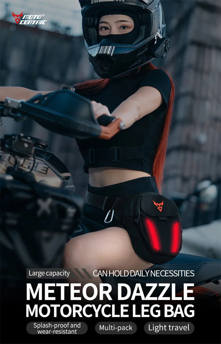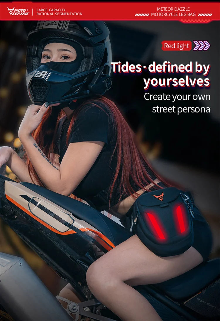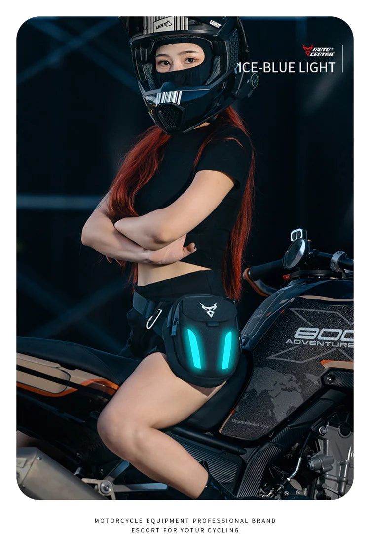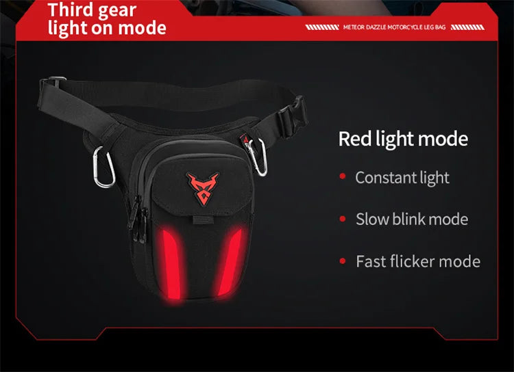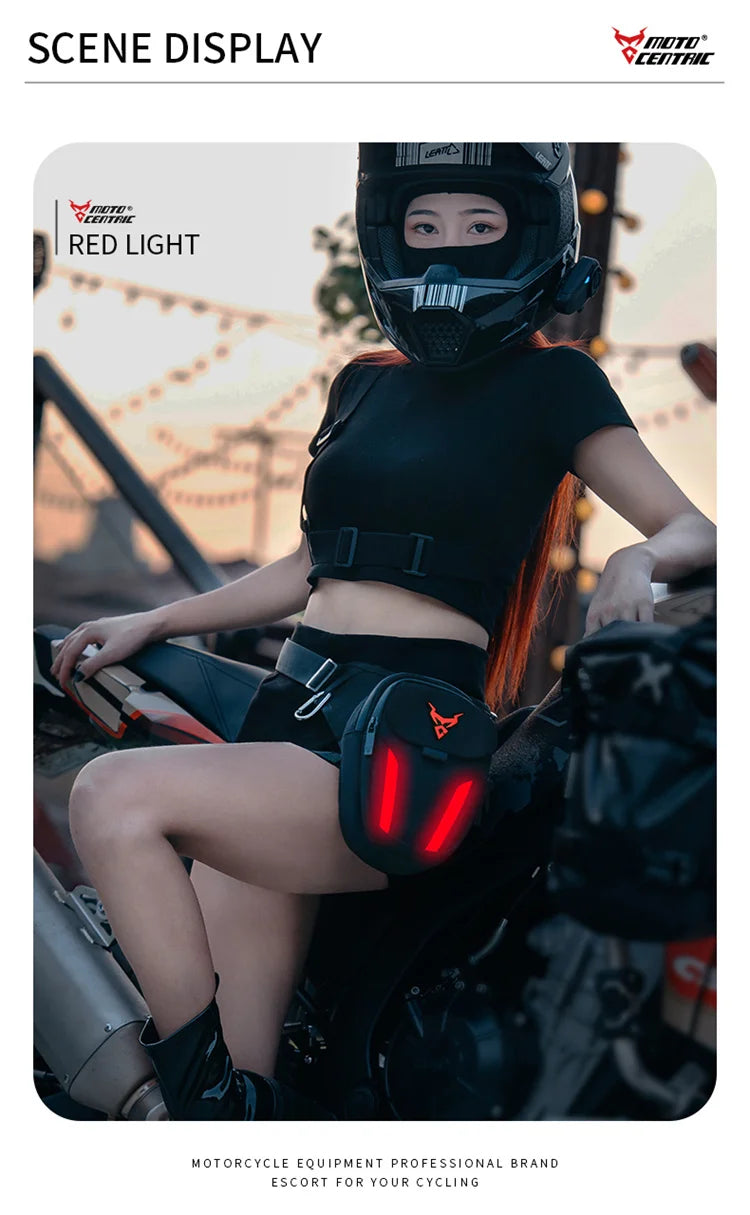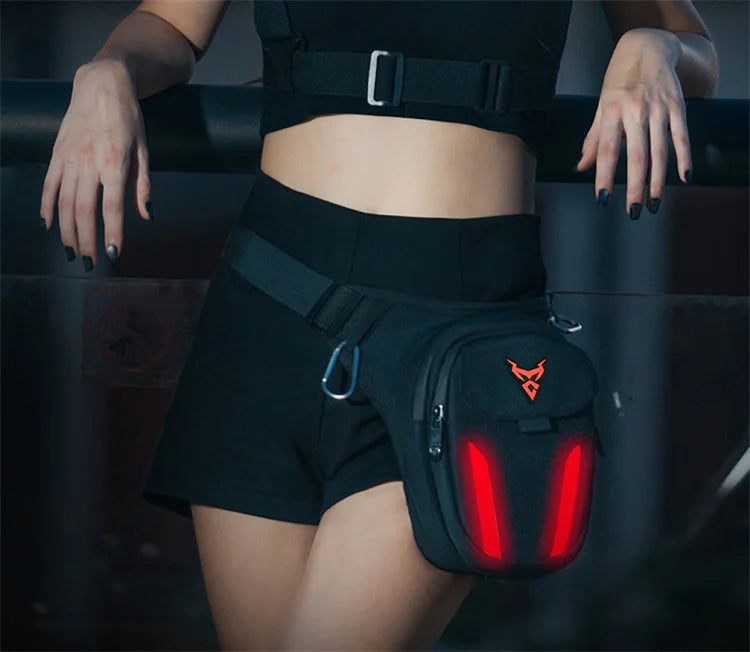 LED Red Light Motorcycle Leg Bag Thigh Belt Hip Bum Waterproof Ride Cycling Biker Waist Bag Fanny Pack Moto Travel Hiking Pocket