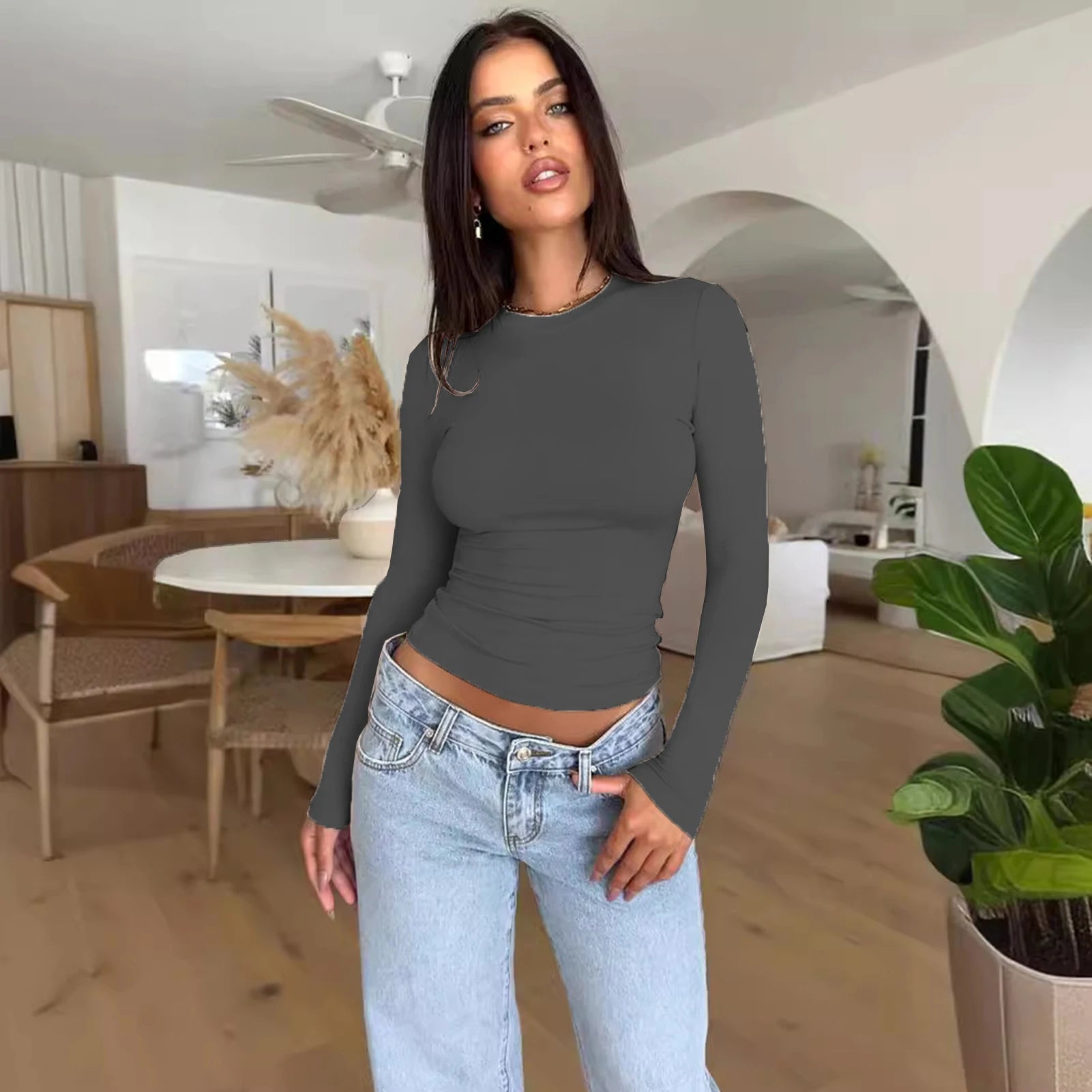Long Sleeve T Shirt Women Autumn Winter Y2k Crop Top Casual Slim Fit Pullovers Solid O Neck T-shirts Streetwear Female Basic Tee