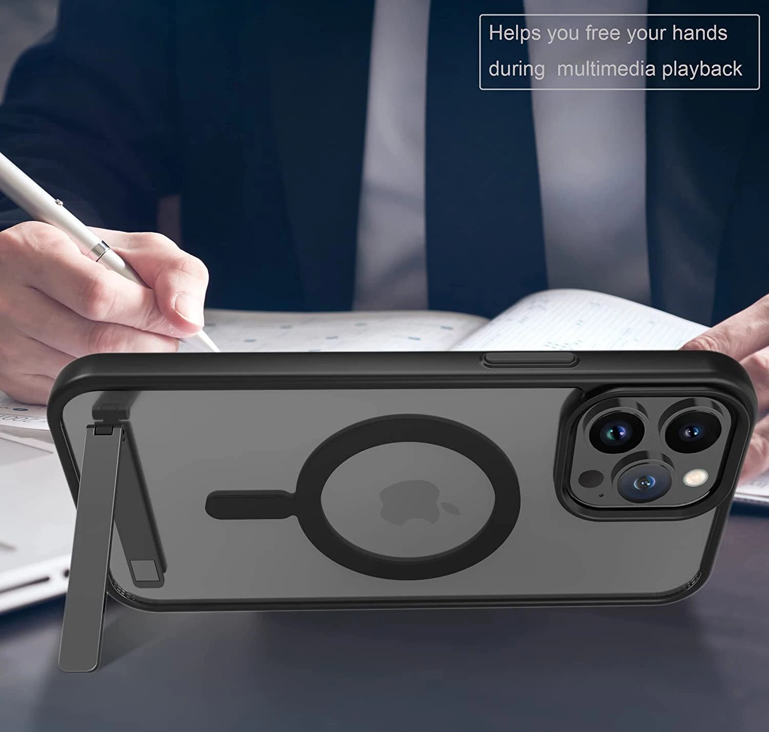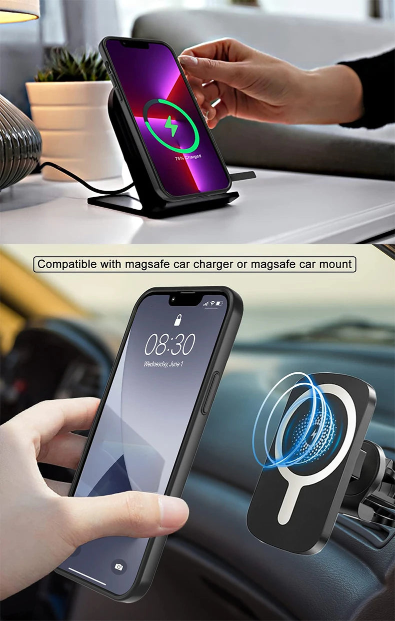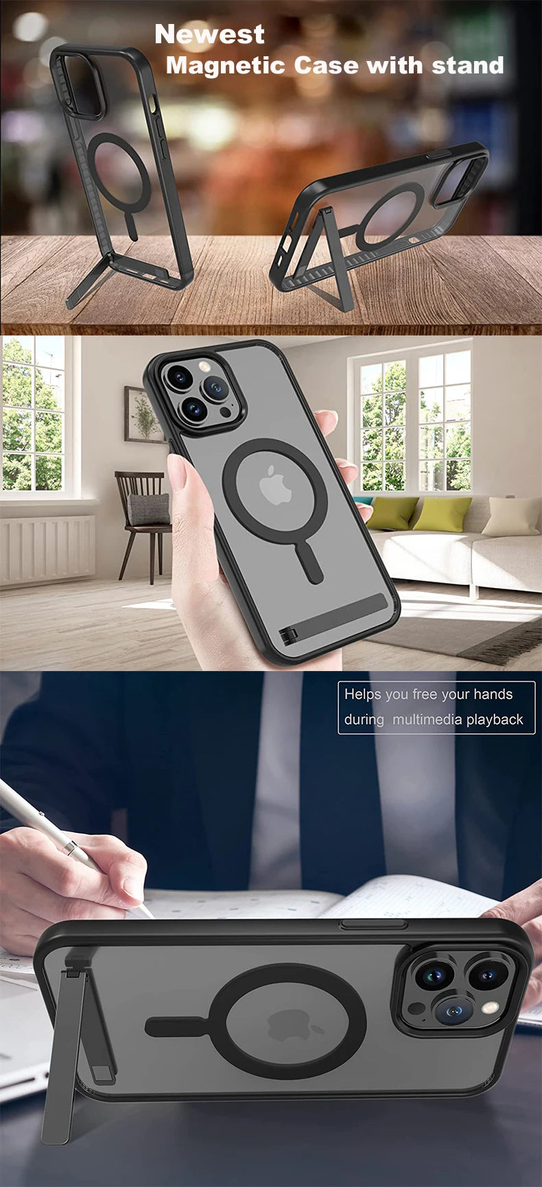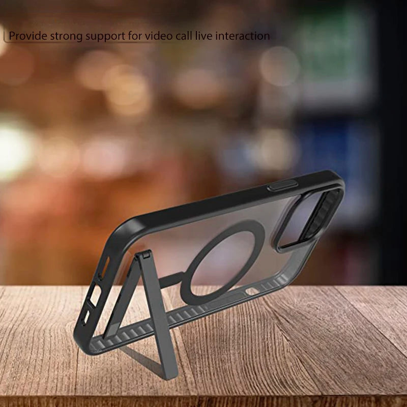 Magnetic Phone Cases with Stand for iPhone 17 Mobile Case Clear Black Cover with Kickstand