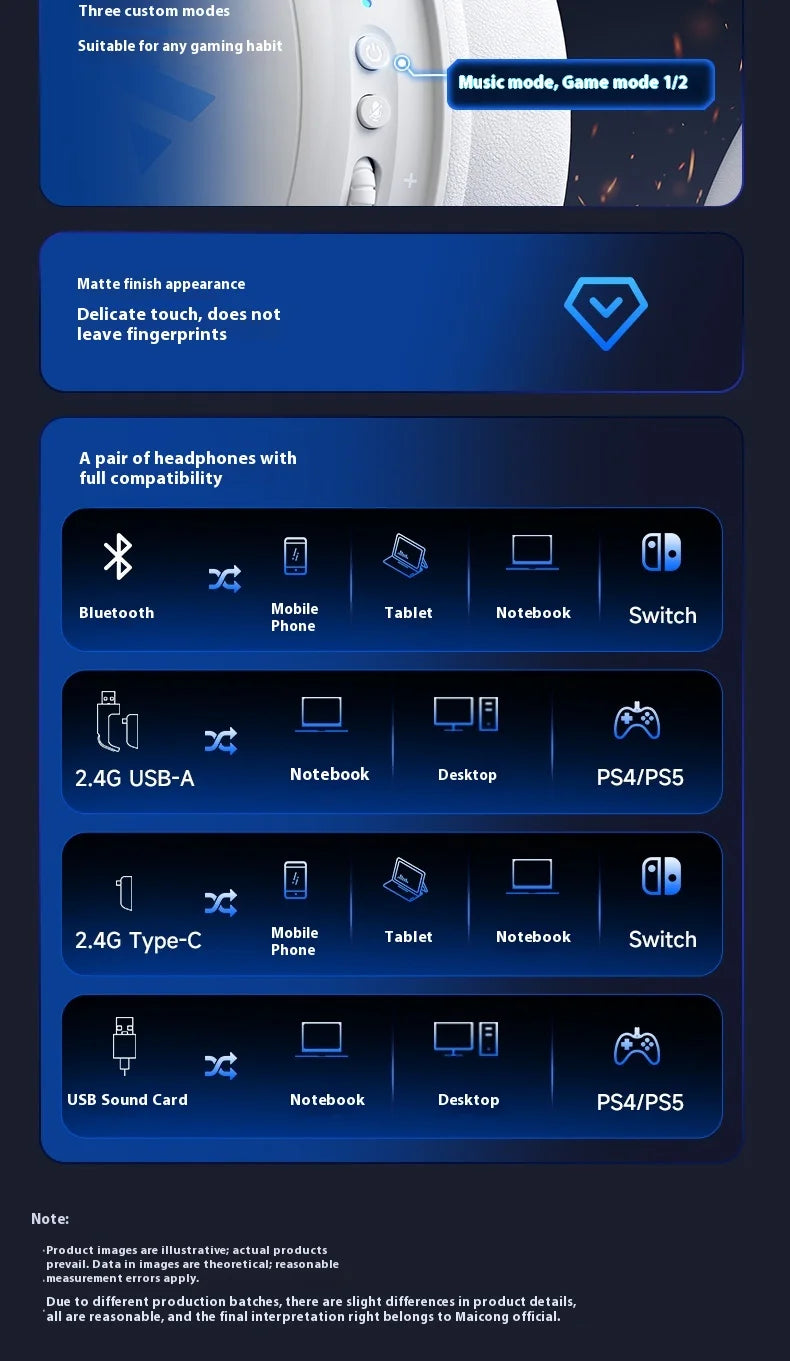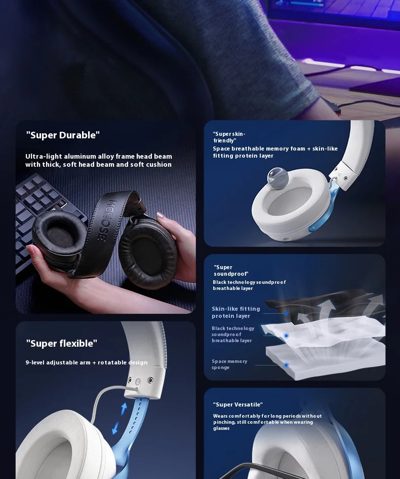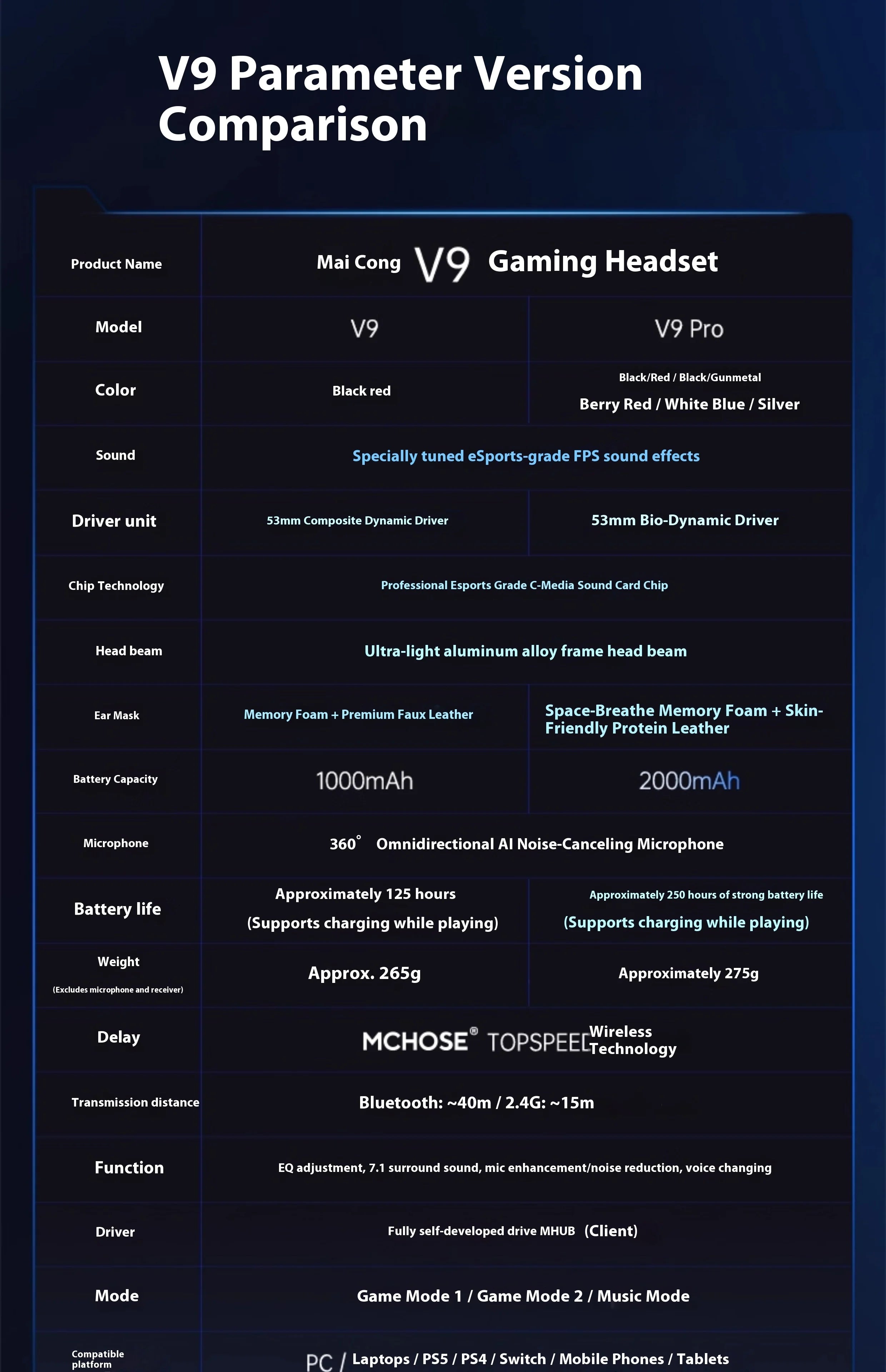 Mchose V9 Pro Gaming Headset Overhead Wireless Bluetooth Computer Gaming Headphones With Microphone Portable Audio Video Devices