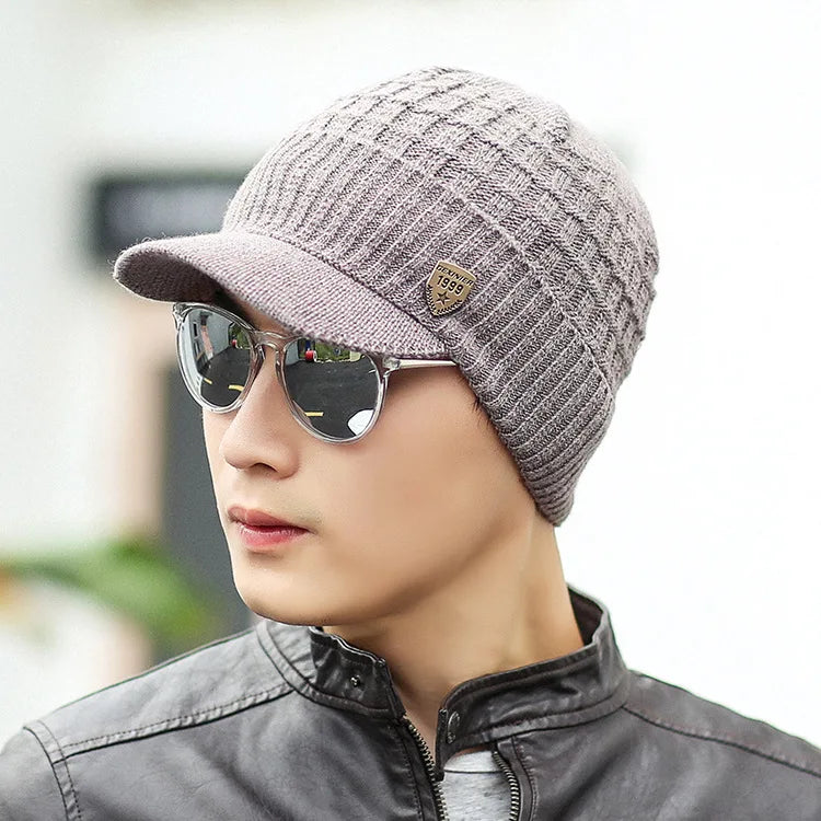 Men's Winter Keep Warm Visor Hats Thickened and Flannel Knitted Elastic Comfortable Winter Hats For Men