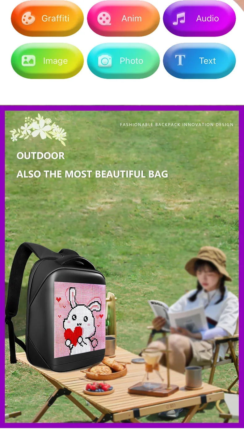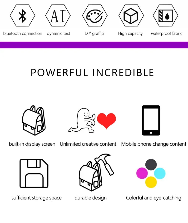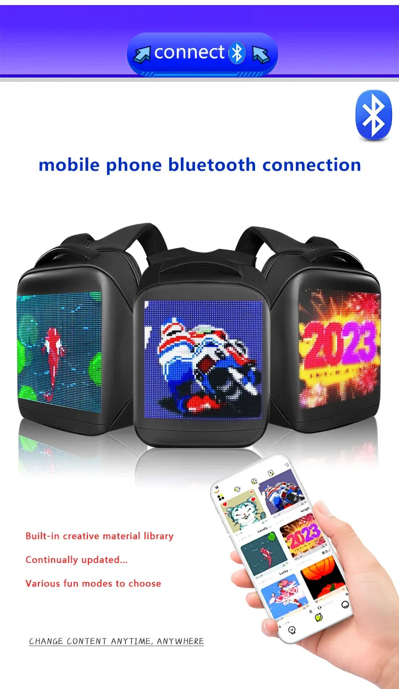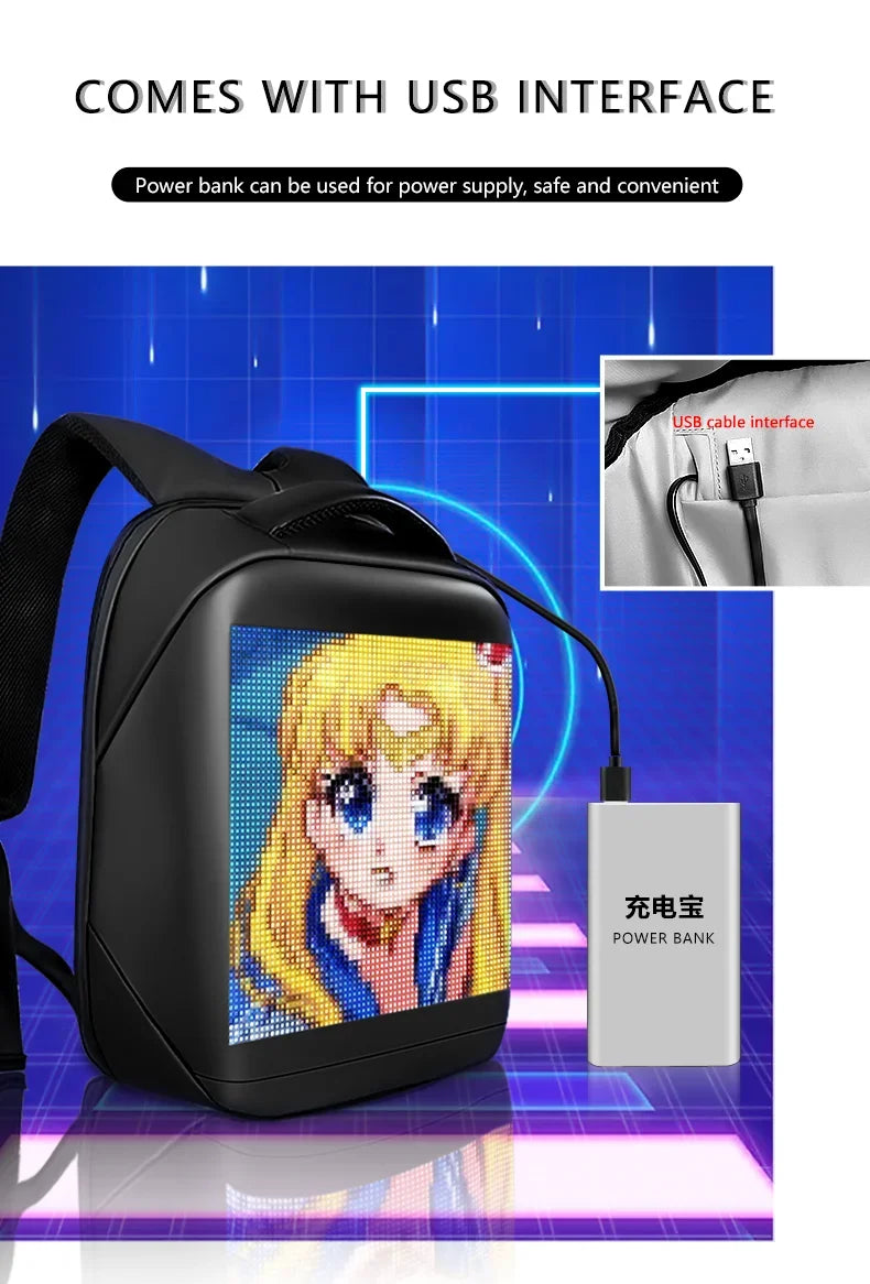 Motorcycle Bags Smart Led Pixel APP Display Screen Intelligent Advertising Business bag Waterproof Moto Riding Creative Backpack
