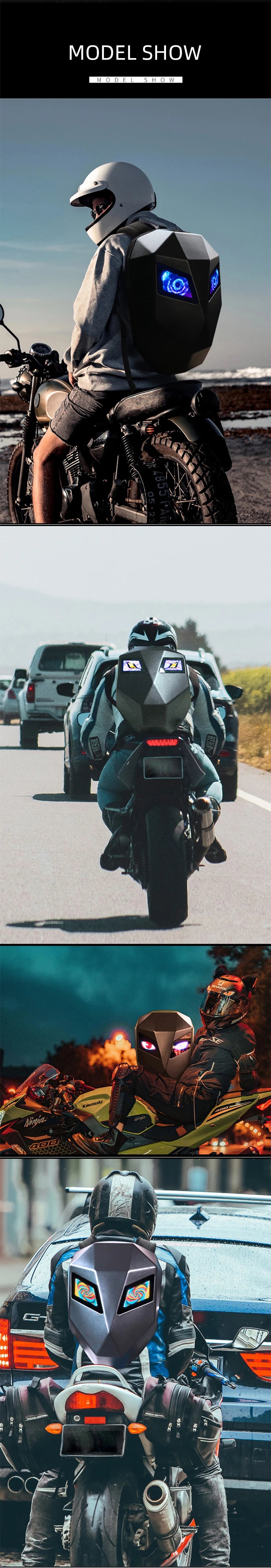 Motorcycle LED Screen Display Cycling Bag Outdoor Riding Helmet Hard Shell Backpack Large Capacity Dynamic Eye Backpack APP DIY