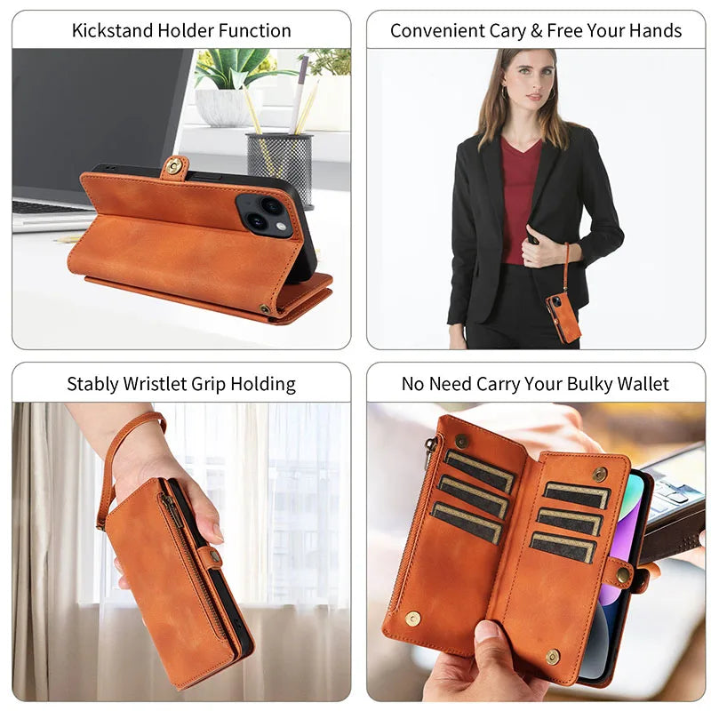 Multi-pocket Leather Wallet Case For iPhone 17 16 15 14 13 12 11 Pro MAX Wallet Card Holder For iPhone 15 Plus Book Case