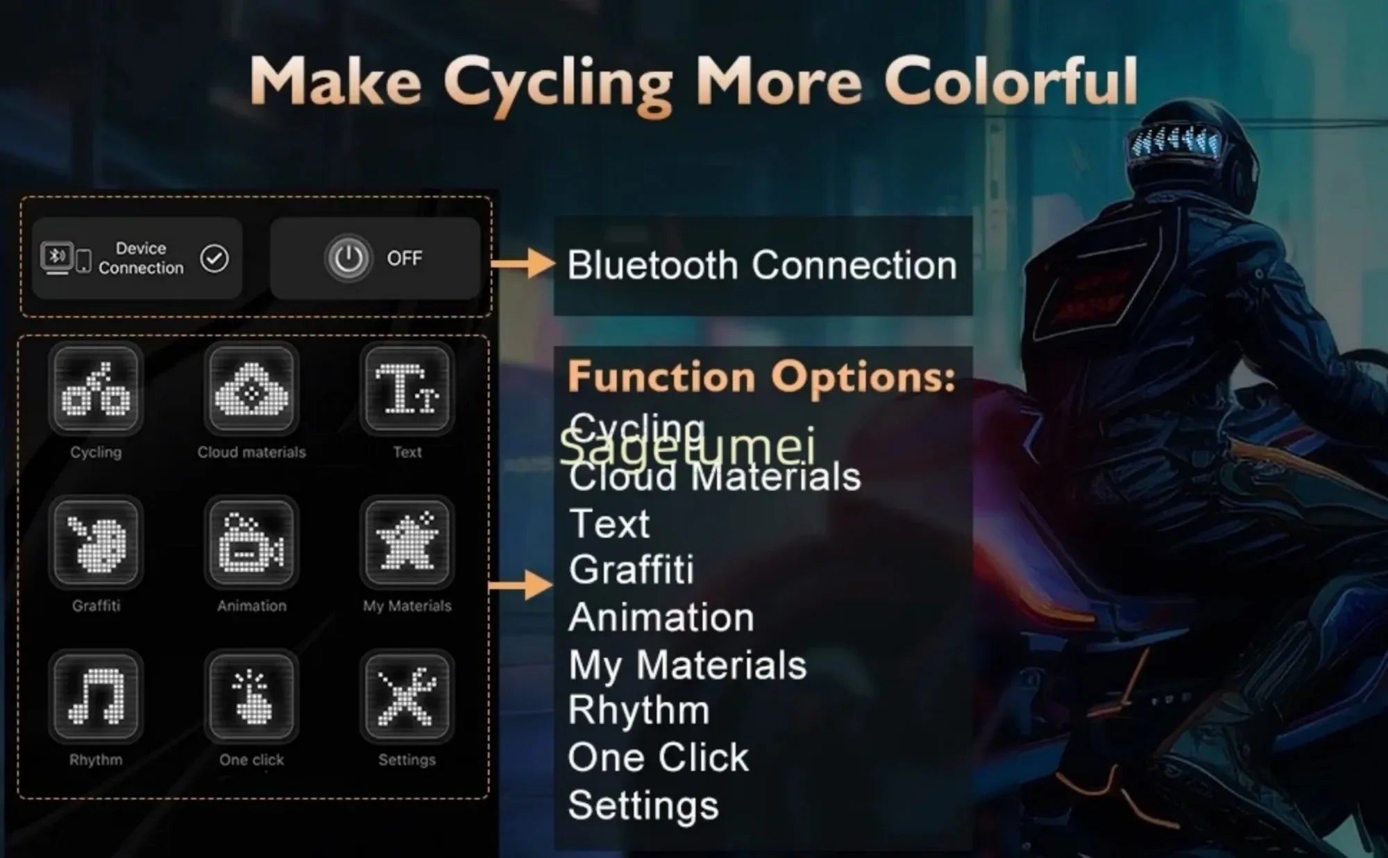NEW APP Programmable LED Screen DIY Led Helmet Display Motorcycle Helmet Warning Light Night Riding RGB Bike Helmet Taillight