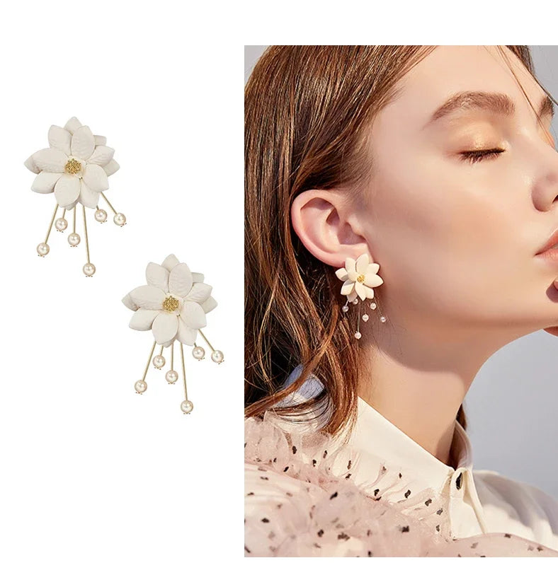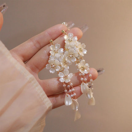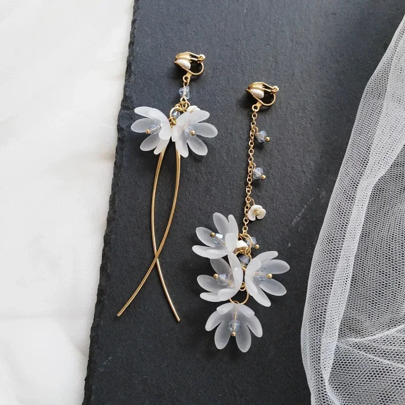 Romantic Temperament Fringed Purple Flower Clip on Earrings Without Piercing Fairy Vacation Style Seaside Long Ear Clips Cuffs
