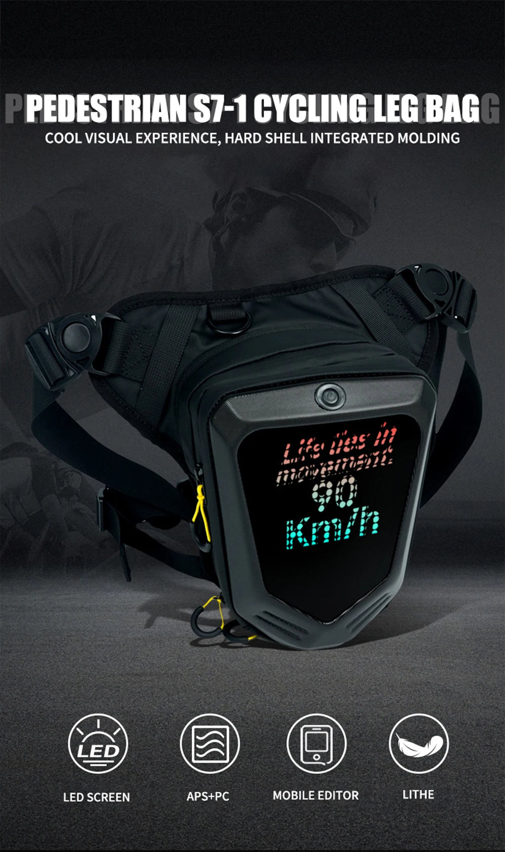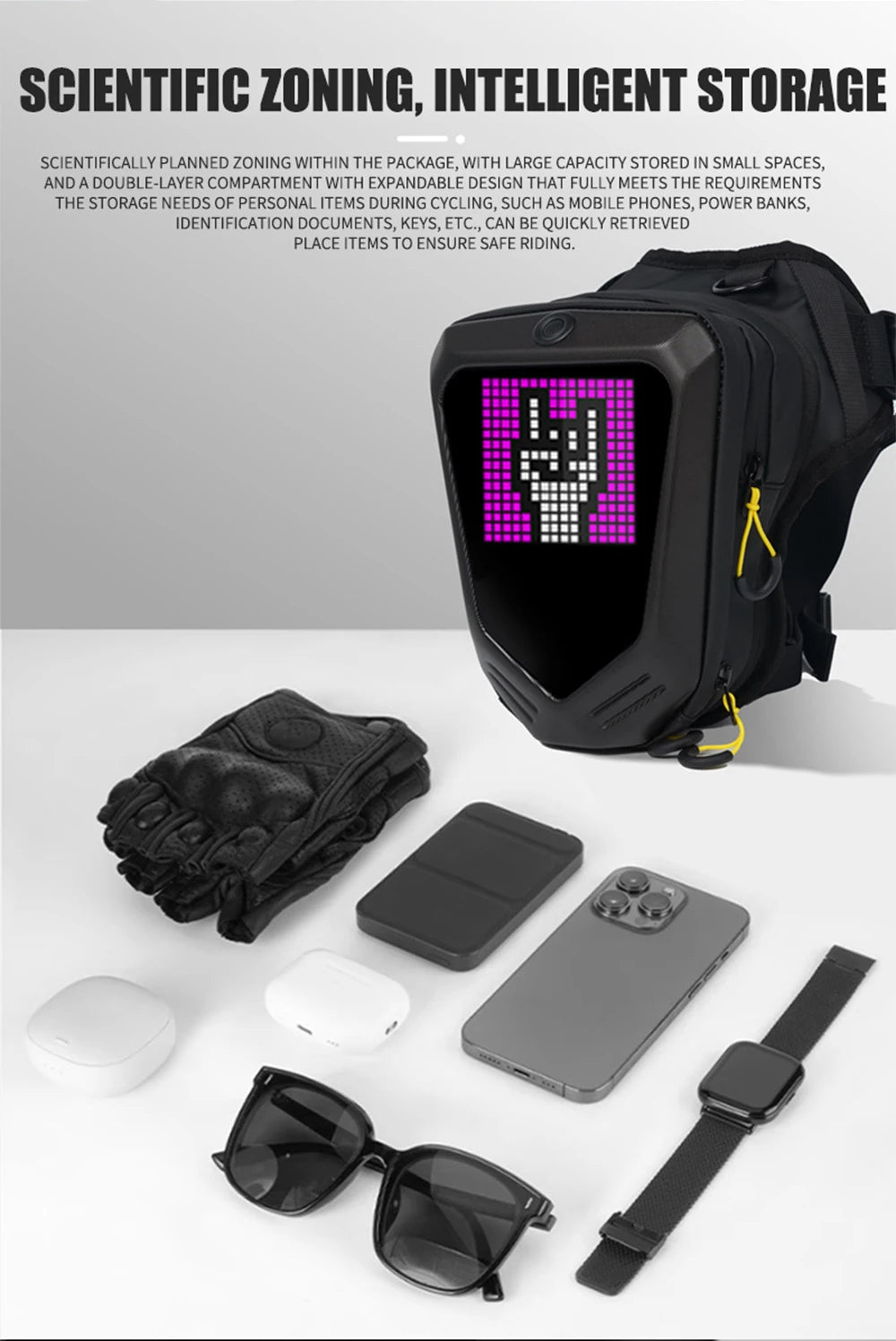 Smart LED Screen Riding Leg Bag Motorcycle Locomotive Multifunctional Waterproof Gaiters Crossbody Storage Travel Hiking Bag