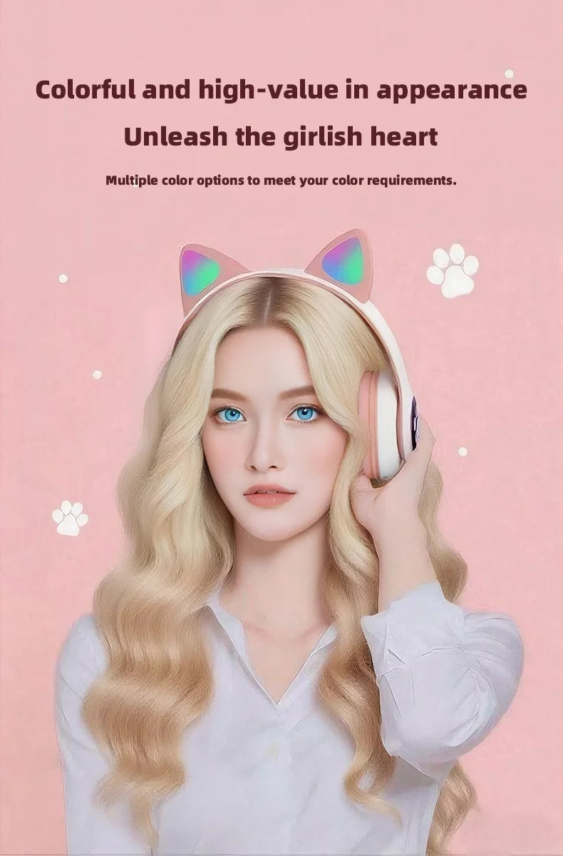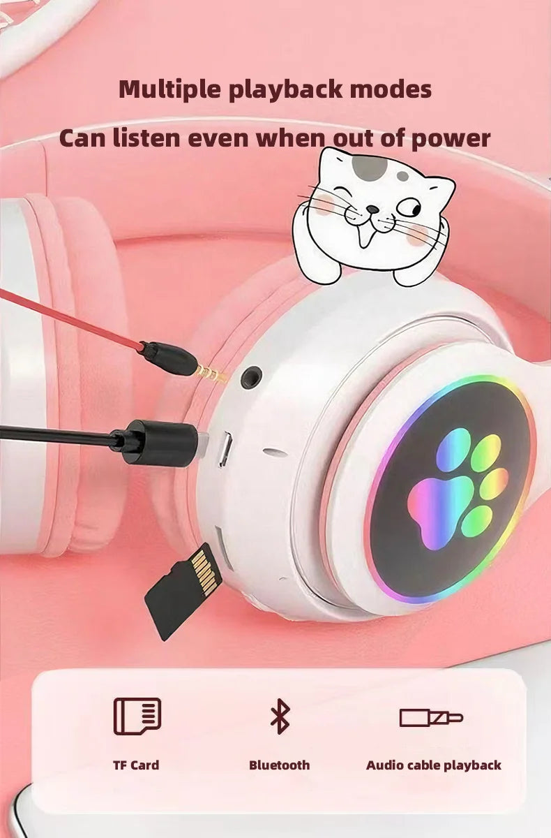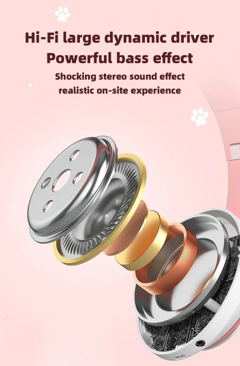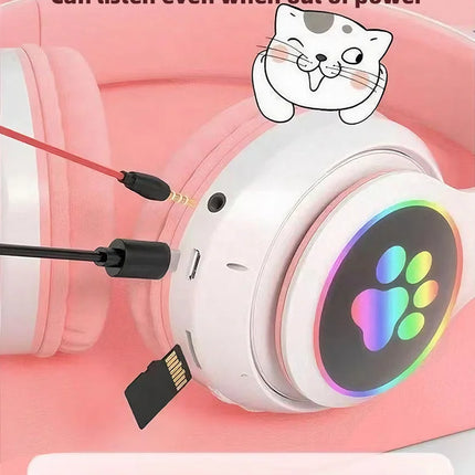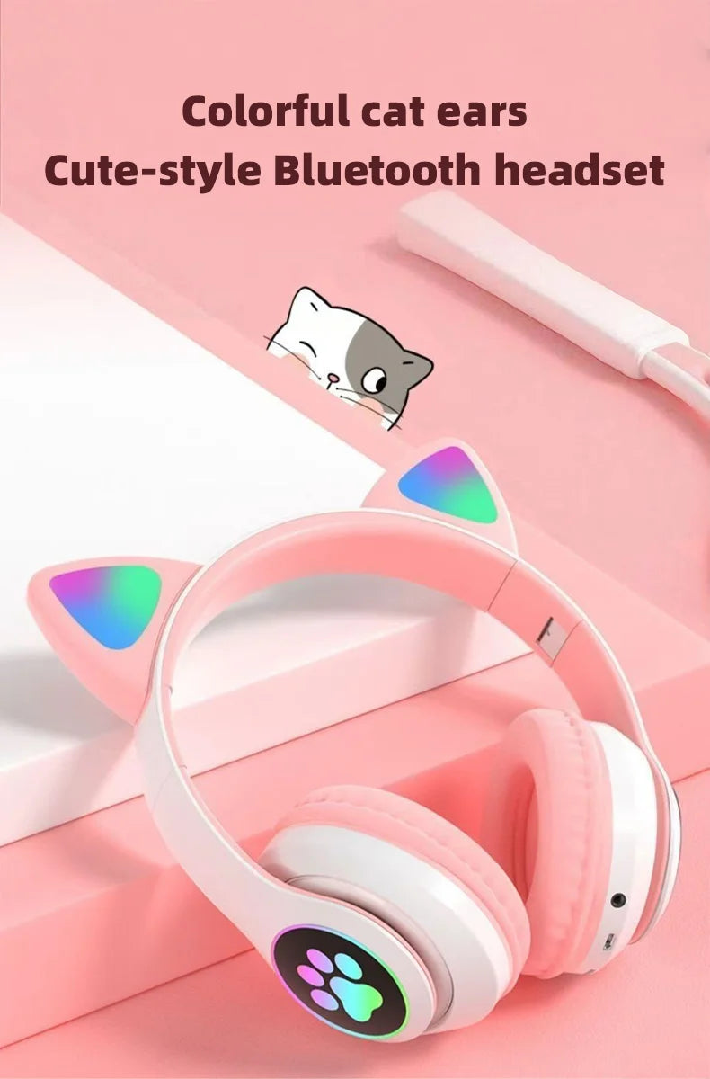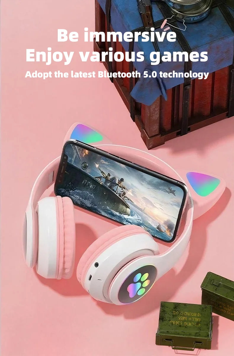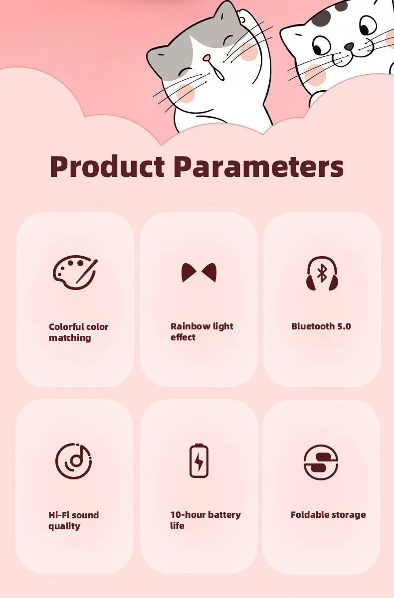 ST-28 Wireless Headphones Cat Ears Bluetooth Earphones Stereo Music Earbuds Bluetooth 5.0 Sports Gaming Headset with Mic