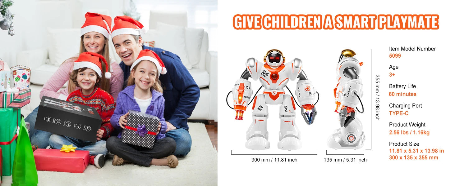 SucceBuy RC Robot Toys for Kids Battle Mode Programmable Remote Control Smart Robot with Bullets Interactive Dancing Robot